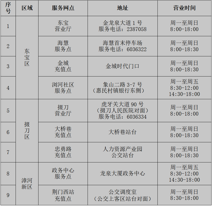 荊門(mén)城區(qū)公交IC卡充值站點(diǎn)