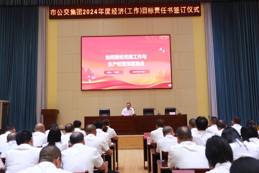 大會以2024年度經(jīng)濟(工作)目標責任書的簽訂拉開序幕。隨后集團黨委書記、董事長卞軍虎以《黨建融入生產(chǎn)經(jīng)營》為題,為集團黨員干部進行授課。