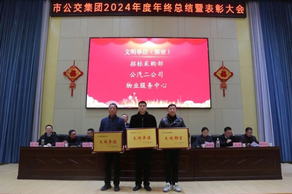 1月21日,市公交集團(tuán)隆重召開2024年度總結(jié)表彰大會,市政府國資委黨委委員、副主任鄧興權(quán),市客管處黨總支書記、處長劉來斌出席活動(dòng)并講話。集團(tuán)黨委班子、全體中層干部、一般管理人員及部分職工代表參會。會議由集團(tuán)黨委副書記、總經(jīng)理李曉麗主持。