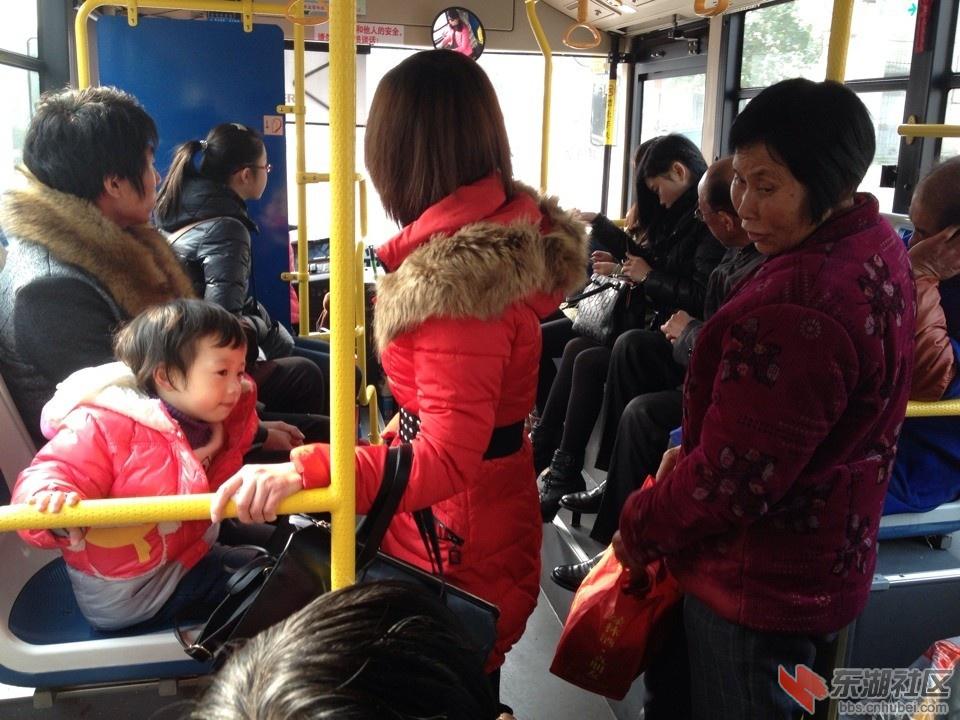 很久沒(méi)有坐公交車(chē)了,今天將車(chē)送到4SD店維修在荊門(mén)日?qǐng)?bào)傳媒集團(tuán)門(mén)前乘坐13路公交車(chē)回家,車(chē)上的乘客比較多,上車(chē)時(shí)已經(jīng)沒(méi)有空位了,車(chē)行至東寶中學(xué)附近時(shí)上來(lái)一位穿紅色羽絨服抱小孩的女子,上車(chē)后該女子努力的將小女孩摟在自己面前從包里拿錢(qián)投幣,可是車(chē)子在行駛時(shí)手里牽著小孩很難站穩(wěn),而此時(shí)坐在前面的幾個(gè)年輕男女都裝著沒(méi)有看見(jiàn)似的,壓根沒(méi)有讓座的意思。哎,自己也站著在,根本就沒(méi)有位置讓?zhuān)哉胩嵝褞孜荒贻p人給這母女讓個(gè)座時(shí),一位年近六旬的老太看到母女后熱情的招呼她們到她的位置上來(lái)坐,小女孩的媽媽看到讓座的是位老人,自己也不忍心坐,但是老人堅(jiān)持讓她們坐,說(shuō)孩子太小,站著很危險(xiǎn),自己身板還不錯(cuò),站站沒(méi)事。
