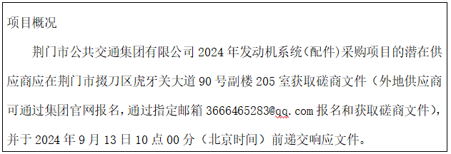 荊門市公共交通集團有限公司2024年發(fā)動機系統(tǒng)(配件)競爭性磋商公告